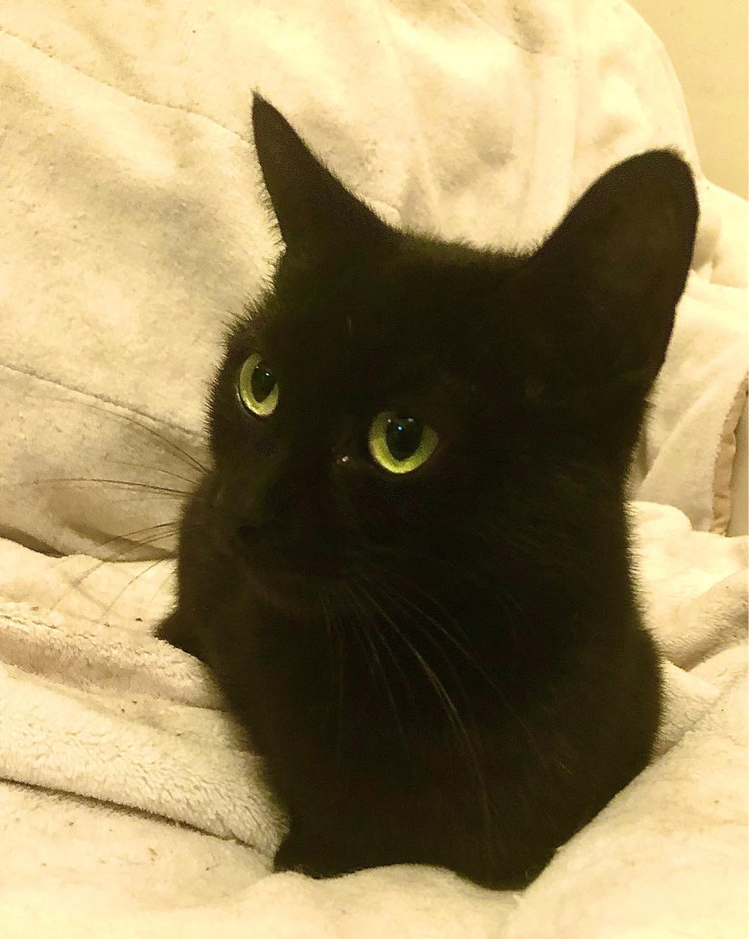 Tess is a stunning black cat who we believe may be a Bombay mix (although we can’t prove it, but she has a lot of the features and traits!) who loves gentle pats and sunning herself on the windowsill.