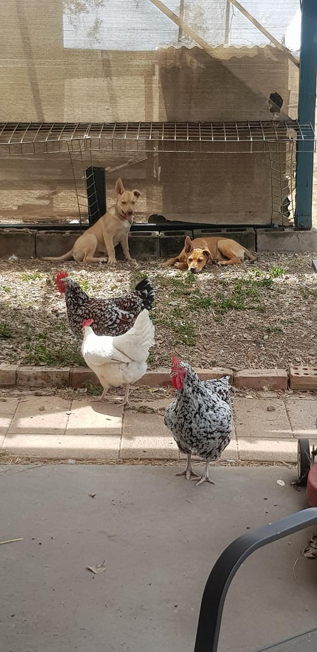 I currently live with other dogs who I adore, and chickens who I am learning to be polite with. I even met horses...they are a little scary but I am very patient and well behaved with them, and look to my owner for direction. I am good with human children too, and being very food orientated, I am a pleasure to teach. I can sleep either inside at night or outside, and my toilet training is going great. I travel well in the car, and mostly just nap. I am compliant and patient at the vet, even if it's not my most favourite place!