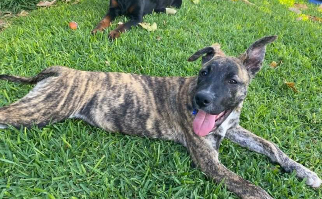 Little Ruby is a sweet natured 4-month-old female Belgian Malinois x Staffy. She is a typical playful puppy and loves toys and the company of other dogs. Ruby walks well on a lead and is learning her basic commands.
