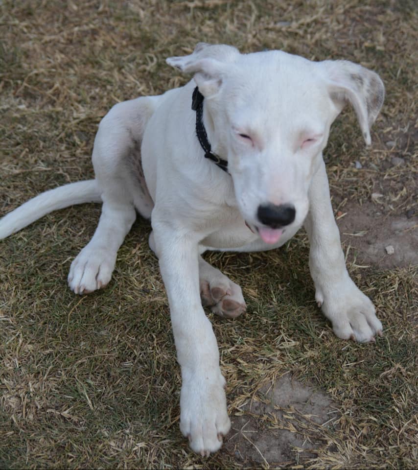 Her toilet-training is almost done, as well as her stay mode. She walks and sits well. She is happy staying outside during the day with her dog buddy and sleeping inside at night.