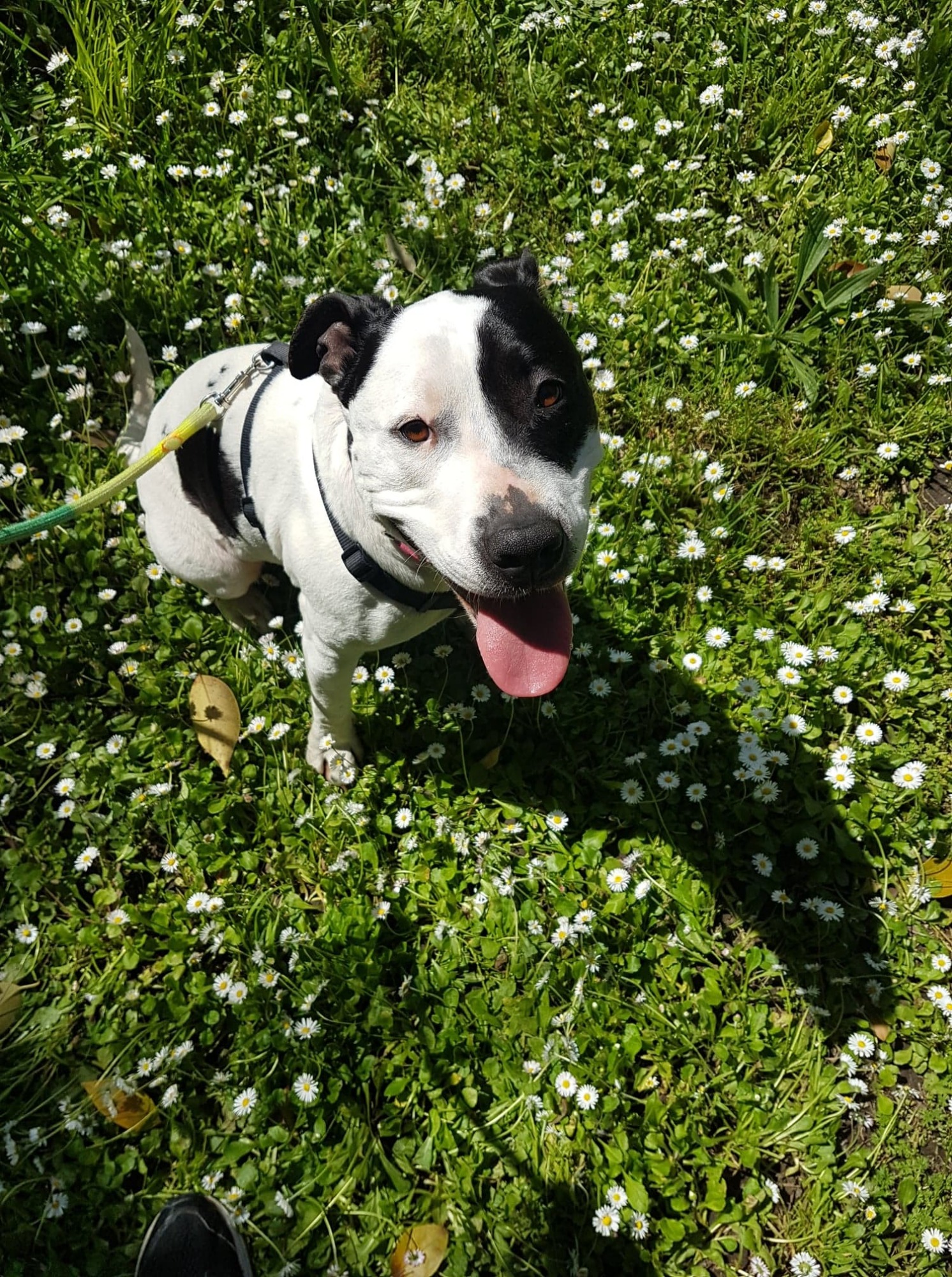 This is Chloe, and regardless of all the hardship she has been through in her short life, she is literally still smiling and the sweetest girl you’ll ever meet. Chloe finally has had the chance to learn to love and we just think she is absolutely gorgeous. She absolutely loves people, being close to you and cuddling constantly. Chloe is a special girl and she needs a special home. She hasn’t had much life experience and although she loves her walks, she had never really been on the lead nor was she exposed to new dogs in her previous life. Because of this, she is what is deemed Dog Reactive. If you are interested in Chloe please look into this and see if it is something you can handle. She needs to be kept away from other dogs for now until a behavioural trainer can work with her in her new home. Her adopters will need to work with a dog trainer; this is a requirement that must be understood when applying. Chloe deserves a loving and special home because she is the most loving dog ever. When you meet her you’ll just know, she is a sweetheart.
