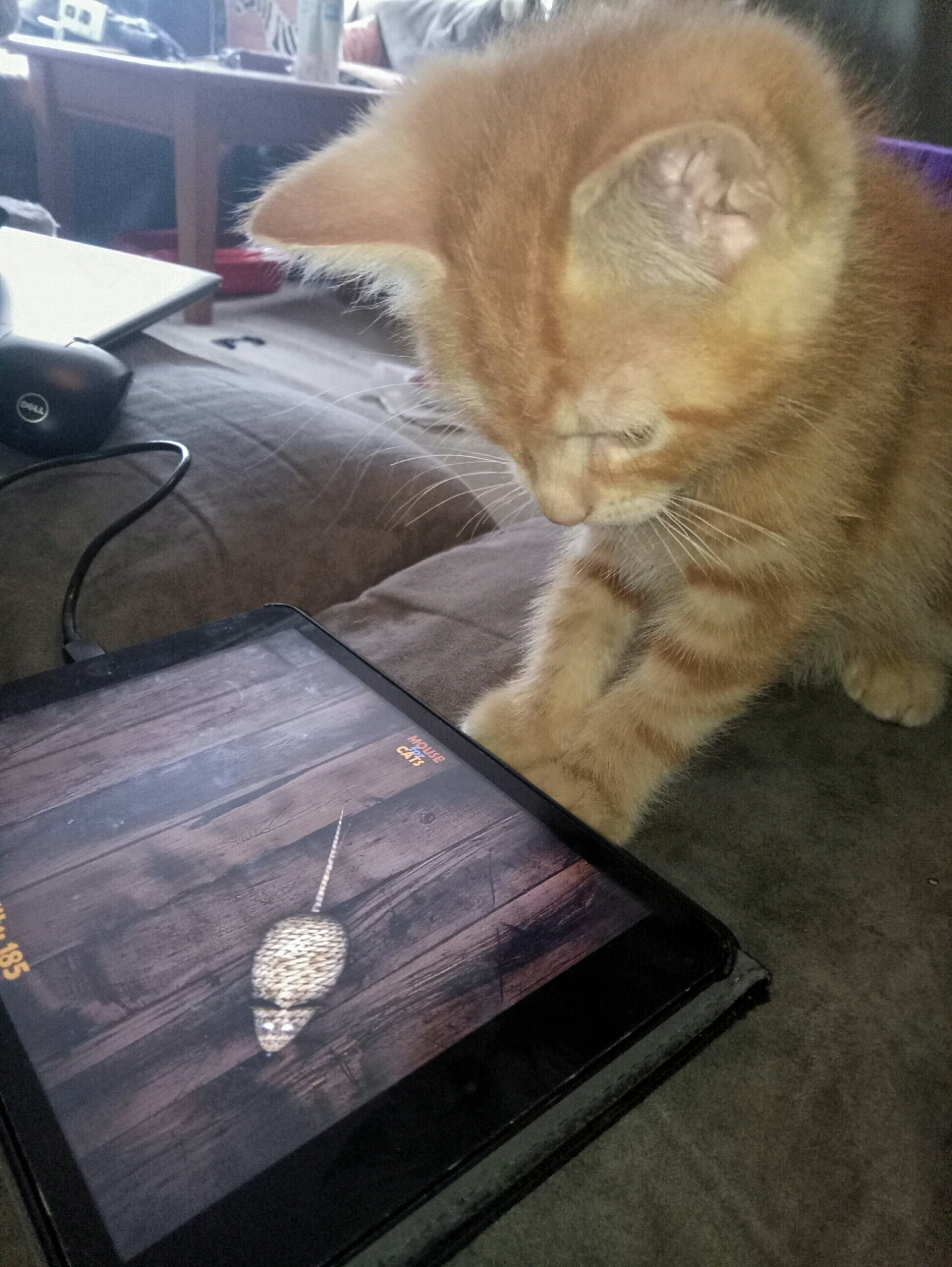 Toulouse loved playing with his brother - chasing, wrestling, rumbling, balls with bells, mice, toes and fluffy toys. He also enjoys exploring - climbing, sneaking, hiding, climbing legs, and wriggling behind furniture, windows and beds. And is quite the technology fan - walking on screens and keyboards and being mesmerised by the screen.