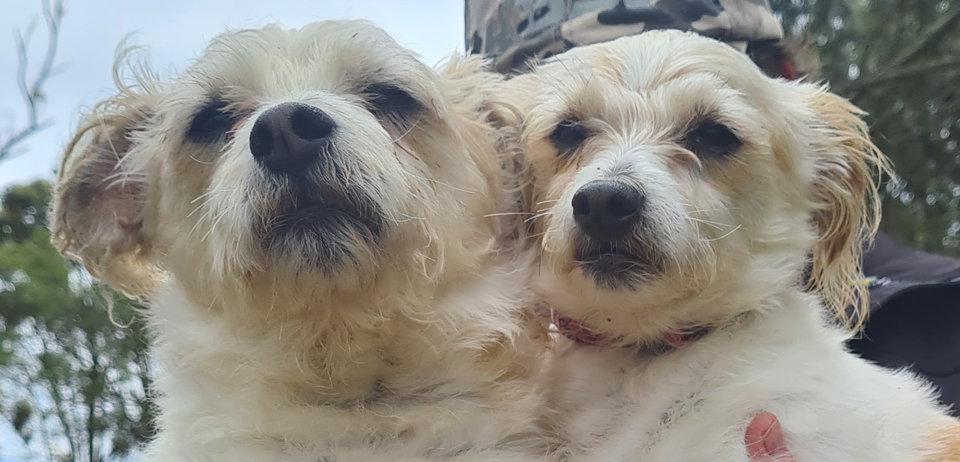 These two sweethearts owner sadly has passed away, they have been cherished by their former owner and are very sad that he has gone. They are brother and sister and best friends that must go together, Benji is pretty easy going chap, loves food, people and his sister.Bonnie a little shy at first and apart from her brother who she adores is not a lover of other dogs, okay going for a walk but not to live with. They are house dogs that love to be with you and are toilet trained. They are nine years old.