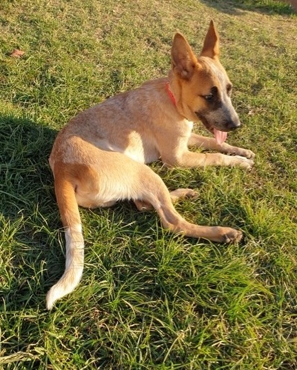 He's a Red cattle X pup and is around 6 months old. Skippy is such a happy young fellow and bounds about with enthusiasm and loads of energy. He loves to play and is good with other dogs and people - he just wants to be everybody's friend.