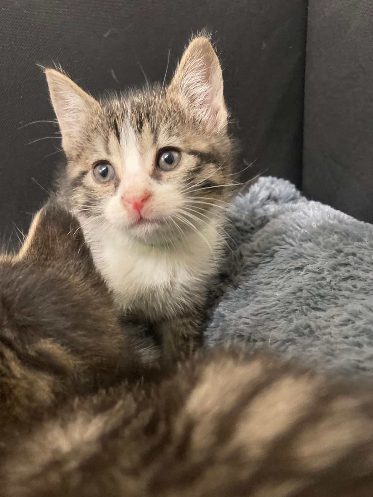 This cutie is going on 6 weeks old and adores all of the attention to be on her. She is super playful and just adores curling up in someone’s lap after a good play date!