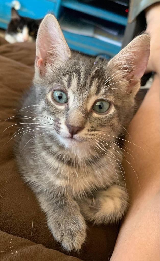 Mr Bingley is a beautiful all gey tabby male kitten. He was from a litter of 7; and now in foster care with brother Sonny. Bingley is in care in a very busy home with a number of older resident cats, dogs and older children; so he is very well socialised and handled and used to a lot of attention. A home with children and/or friendly established pets would be ideal.