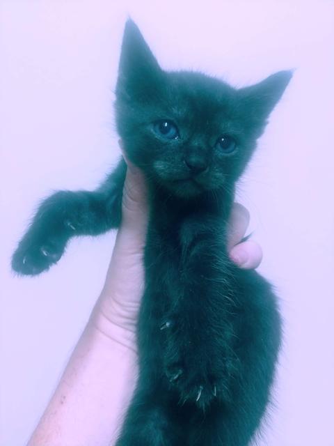 Lovely Chino is an all black (with a white streak on his back leg) male kitten. He is a happy, playful and adventurous kitten - 1 from a litter of 8!!! Chino is in a very busy kitty household and gets to play with older resident cats; has a dream of a kitten play room to chase his siblings around and he loves climbing on all shapes and sizes of cat trees. A lovely addition to a family looking for a feline buddy for their established pets.
