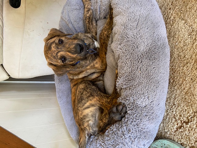 Being Mastiff x, this pup is going to be a larger dog & from what their foster mum can tell from he’s not going to be highly energetic dog so would suit a house where he can have lots of time to laze around. They love to be welcome inside to sit on your feet while you try to get things done until you give in and give him belly scratches.
