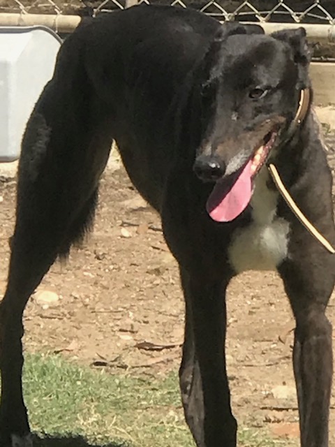 Dizzy loves her walks & gets so much fun doing zoomies around the paddock, she can't stop smiling. She calms down after a short time, but she does have more energy than the other greyhounds in care, so would do really well with a more energetic family who enjoy life outdoors.