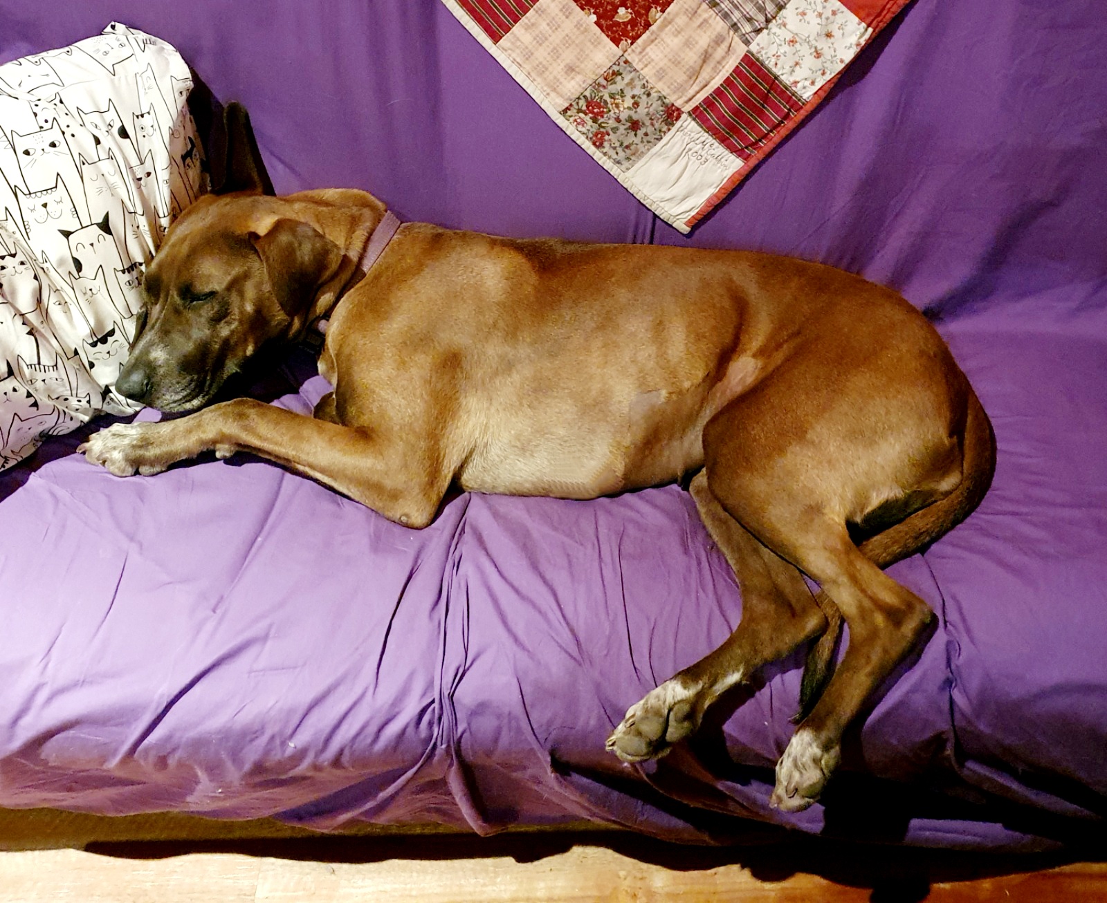 I'm house trained, and I like sleeping next to your bed or on your bed if you'll let me but I'm also very happy on my soft comfy dog bed in the loungeroom.