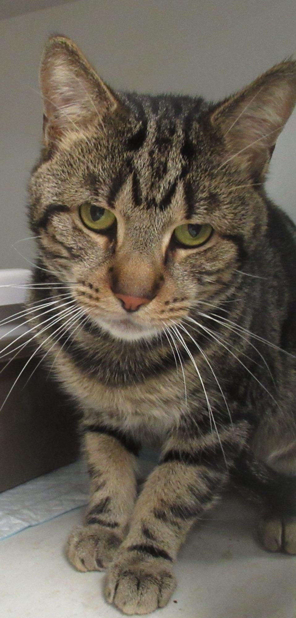 Have I mentioned this handsome tabby is super affectionate and loves to hand out head buts and rub against your hand? He also loves food.
