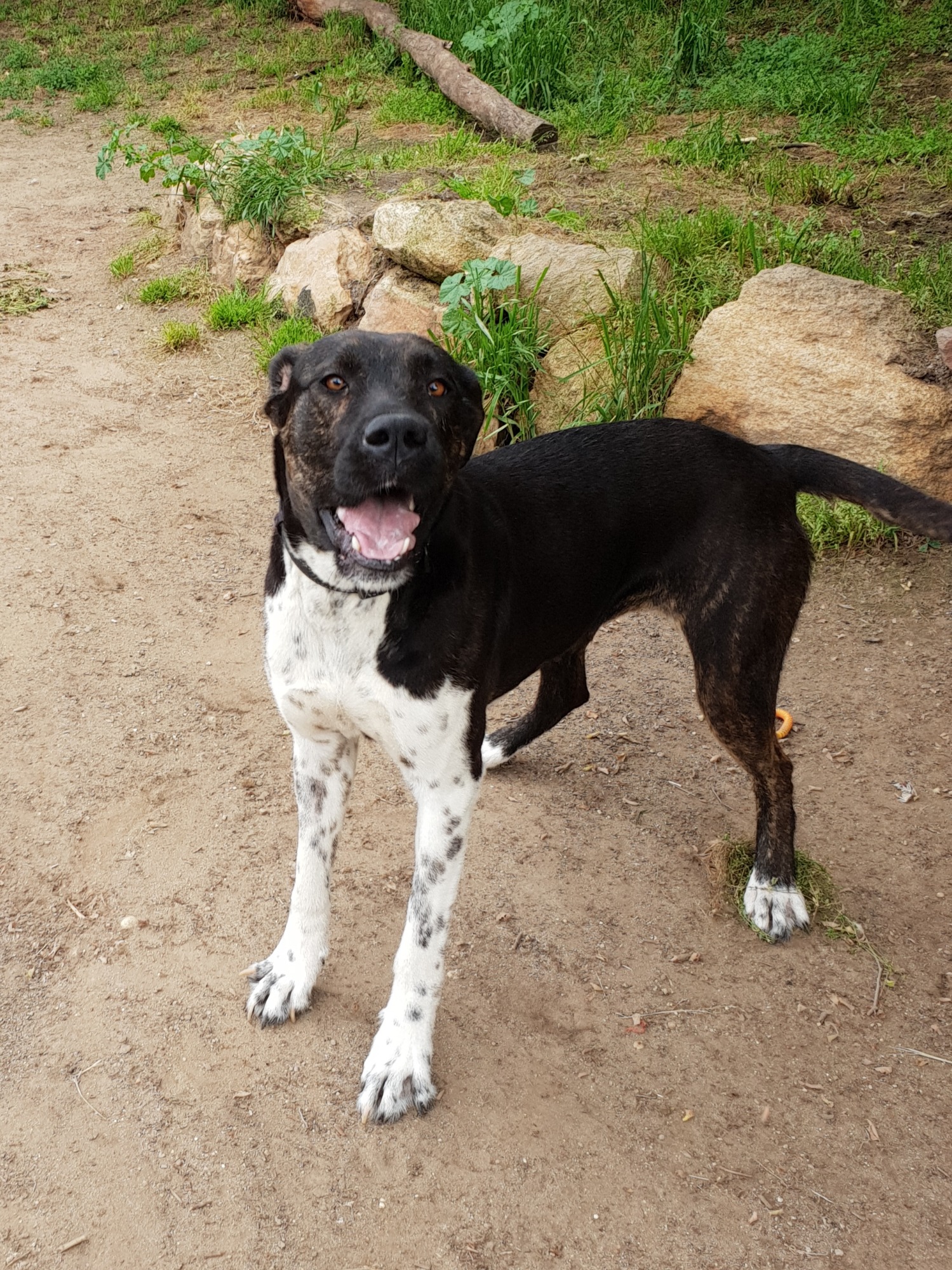 This girl is just the sweetest. She has stag in her but maybe mastiff and greyhound. She is about 2yrs and a great foster. She with other foster dogs big and small ,male and female and is great with them all but she hasnt been around cats. She is inside / outside but will need training inside as she will check out the benches