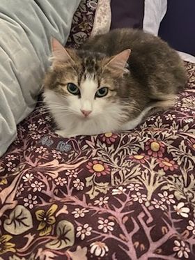 Hi I'm Dell and I'm a stunning little lady! I was born on the street so am still working out the whole human thing, but I’ll sit nearby, roll around at your feet , say good morning with a sniff and lots of talking ; but your hands worry me sometimes . I occasionally let pats happen but I’m mostly happy with a nearby companion. I do like to talk though, a LOT! I want to know you’re nearby most of the time, I don’t like being lonely . I’ll watch you get dressed , hang out at meal times and even watch over the kids. If I forget where you went , I’ll soon shout out looking for you. I just love being around my foster family , even the noisy kids.