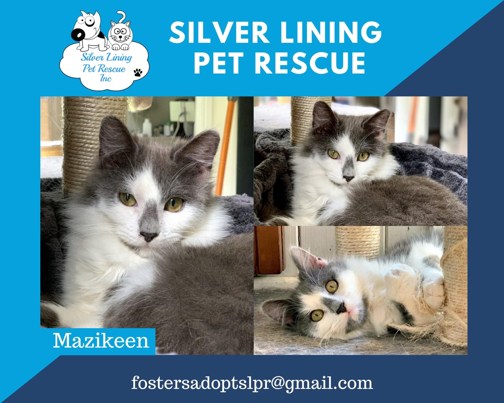 Handsome Mazikeen came into rescue very underweight. He has a lovely, calm personality and gets along very well with the other cats in the foster home.