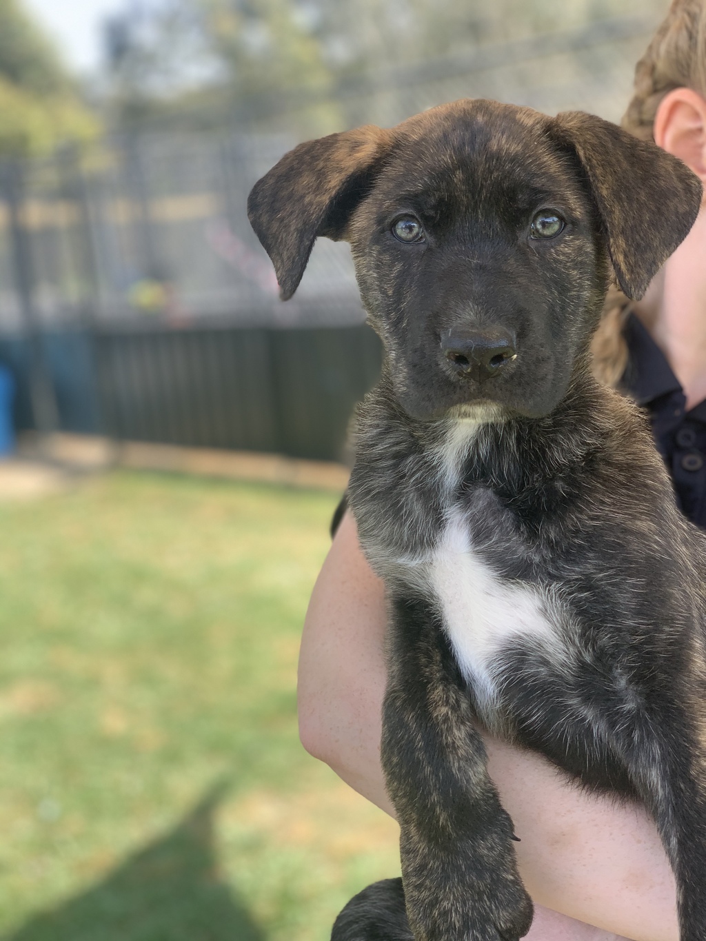 This litter of seven, arrived at the shelter with little experience of the world, but have been encountering new environments and taking on adventure head-first ever since! These puppies will grow into large adult dogs over the years and will require an owner who is understanding of the large lap dog they may open their hearts to! With the careful guidance of our animal attendants, these young canines have explored lots of new surroundings and met plenty of new friends. Walking on grass and tumbling over cardboard boxes, feeling rain and wind, and trying out new toys and treats, the pups are gaining a broad understanding of the world around them. They have also started to learn some basic skills like sit and drop!