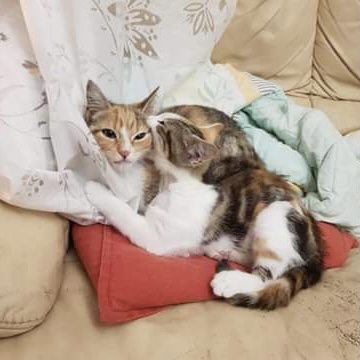 These two are extremely sweet together and as bonded as you can get. They are two peas in a pod. They play together, cuddle,sleep and groom each other. Latte seems to be more open to explore other relationships😆 and likes to hang out with the foster cats and dogs but Pumpkin Spice isn't as keen but also not phased by them being around.