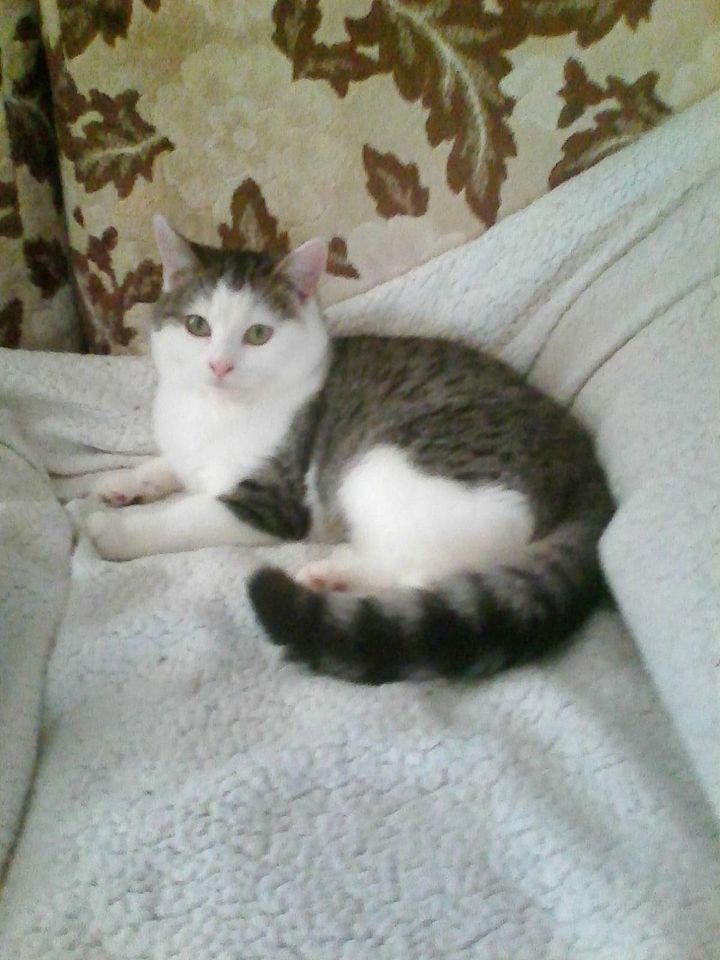 Billie is a gorgeous grey tabby and white older kitten, around 10 months old :)