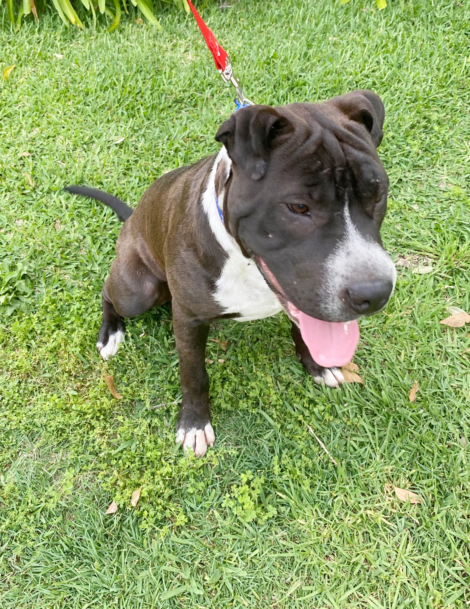 Cuddles is a sweet-as-pie male 6month old Shar Pei x Staffy with so much love to give his humans. His cute face shows some little scars of the hard life and situation he's been rescued from, but you can tell he's grateful with every tail wag... and there's plenty!