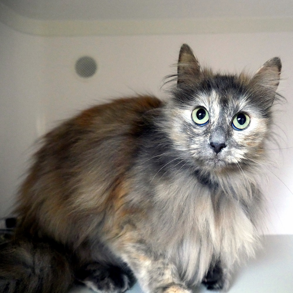 Betsy is a stunning young girl who is looking for a quiet, patient and loving home. Betsy is very shy meeting new people and in new surroundings, it is going to take plenty of time and understanding for her to settle. She is very timid and does stress easily so a home with no children is a must, she does enjoy the company of other felines and may do well in a home learning from a friend.