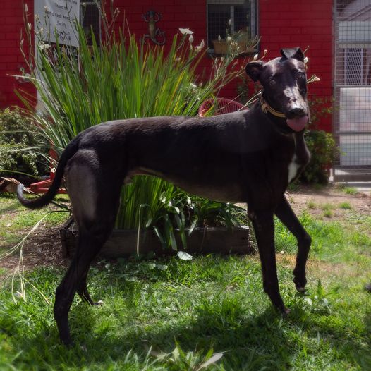 Sam is a typical greyhound - friendly, outgoing and calm.