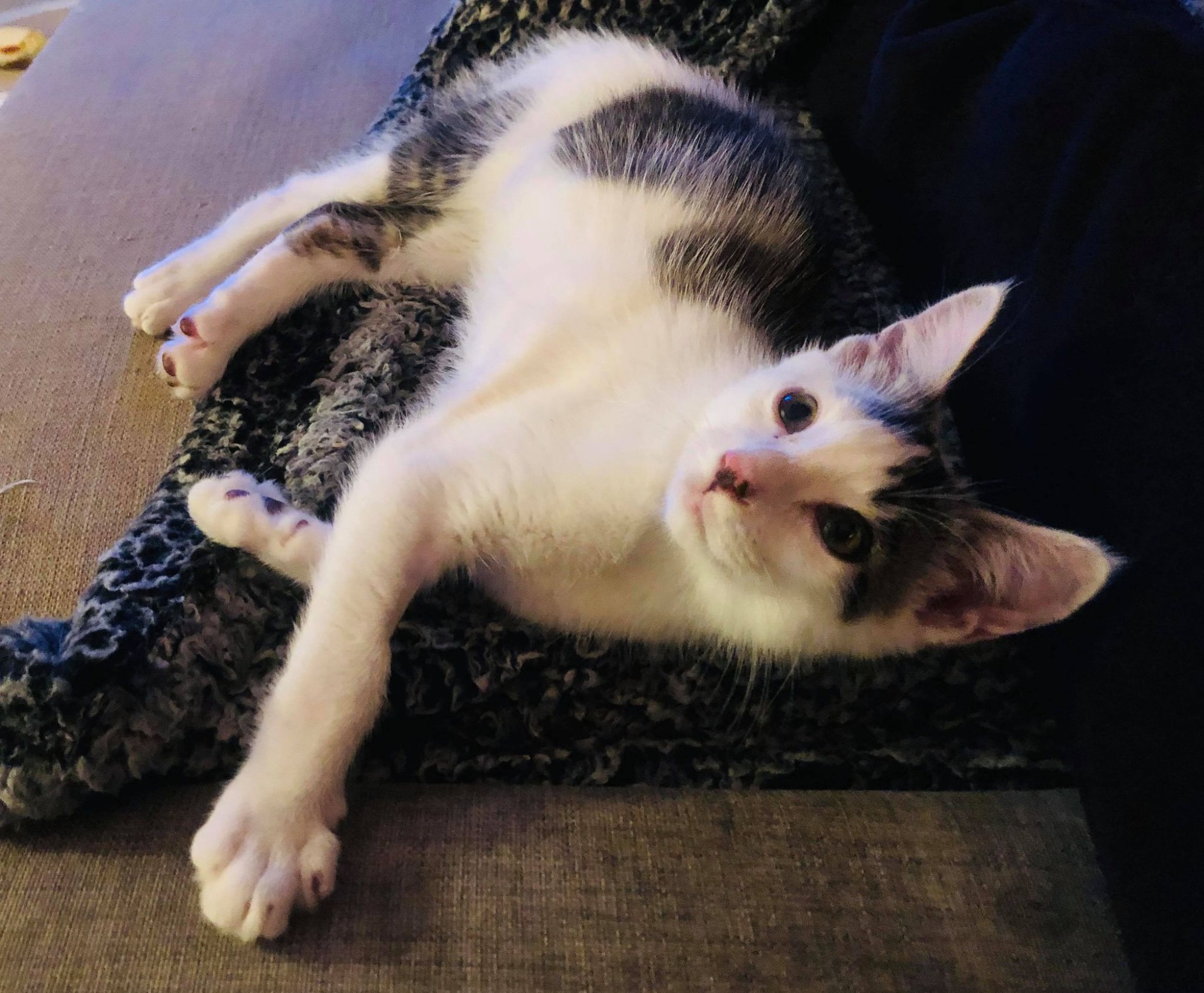 Hi I'm Ollie and I've been nicknamed "snow prince". My favourite thing in the world is jumping around and playing with my kitten friends. I have been told I am super sweet and gentle. I am really looking forward to finding my forever home.