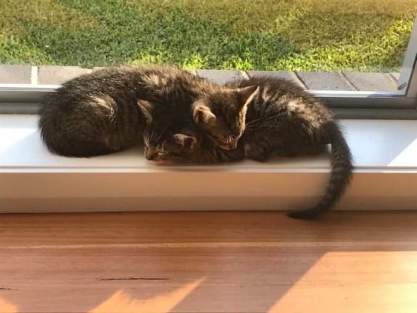 We were rescued from the streets of Sydney and love our foster home. Our favourite thing is playing with each other and snoozing. We also love being close to people, exploring and cuddling and laps!!