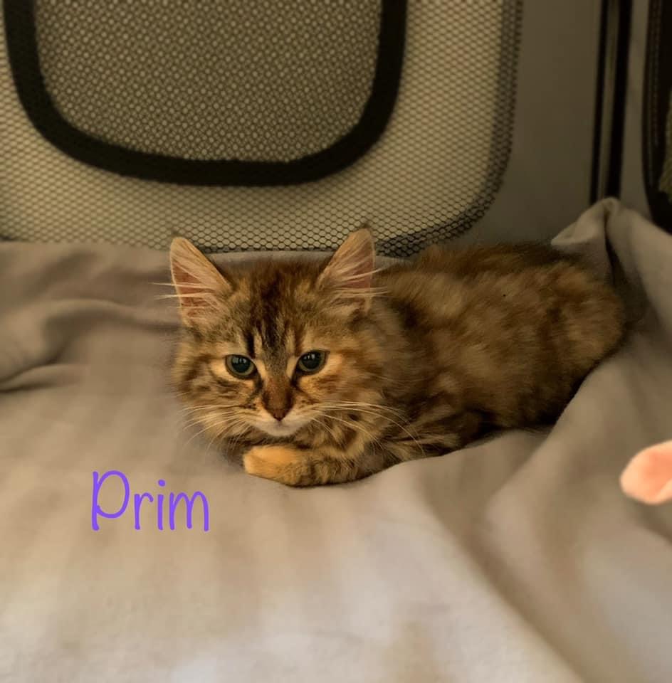 Prim is a fluffy girl who had to have a partial amputation on her tail early on so it’s a little shorter than normal but we think it makes her look even more beautiful! She’s also very inquisitive like her sister but always lets Katniss take the lead
