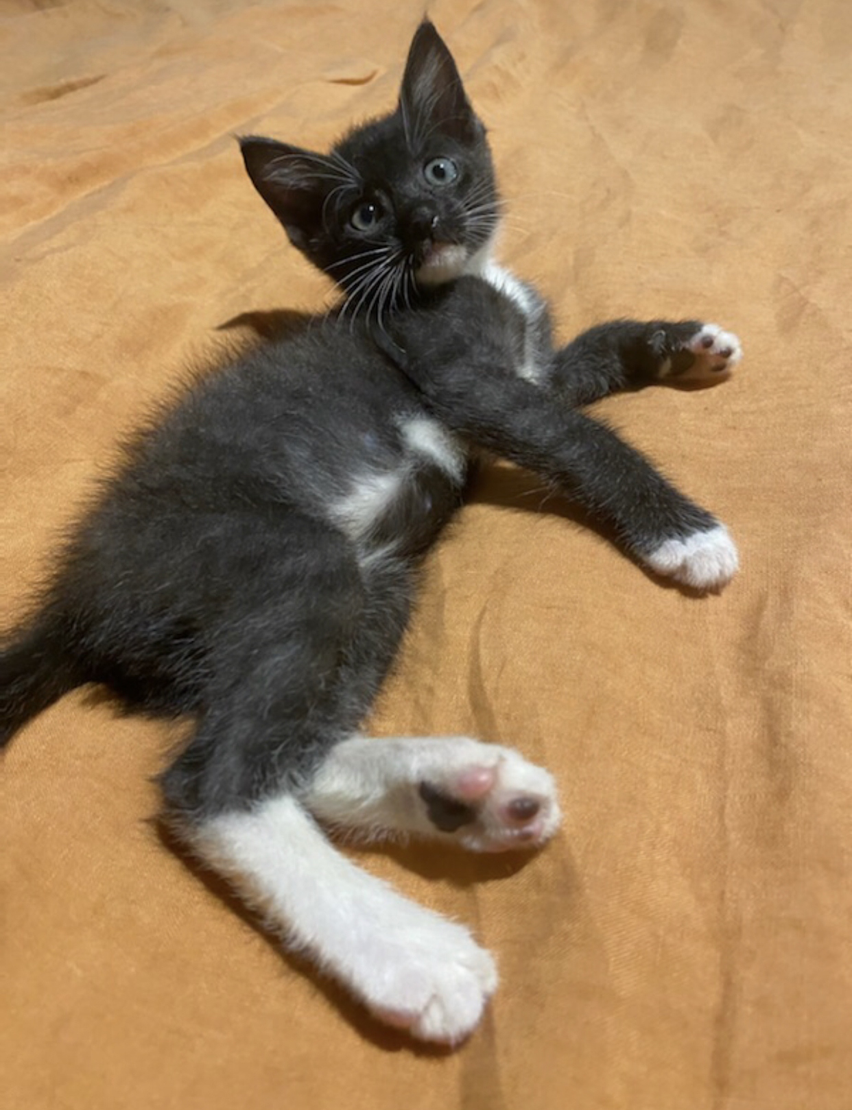Clyde was found along with his sister Bonnie in a garden shed when he was only a few days old. Their mother had abandon them and they have been hand reared and bottle fed since. Clyde is a real sook. Unless he is having his mad half hour, he loves to be by your side and is always purring. He is still very young but thinks he’s a big cat, therefore he can be clumsy and misjudge distances when he is jumping and exploring. He is a beautiful boy, with a very special nature , he loves to be with his humans and would make the best addition to any family.