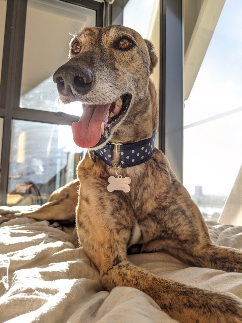 Astrid is a stunning, brindle girl who turns heads wherever she goes. Her mottled coat and deep amber eyes are enough to make anyone’s heart melt, but Astrid couldn’t give two hoots about her good looks. Her sleek exterior hides a silly, goofy and funny girl who makes an impression on everyone she meets.