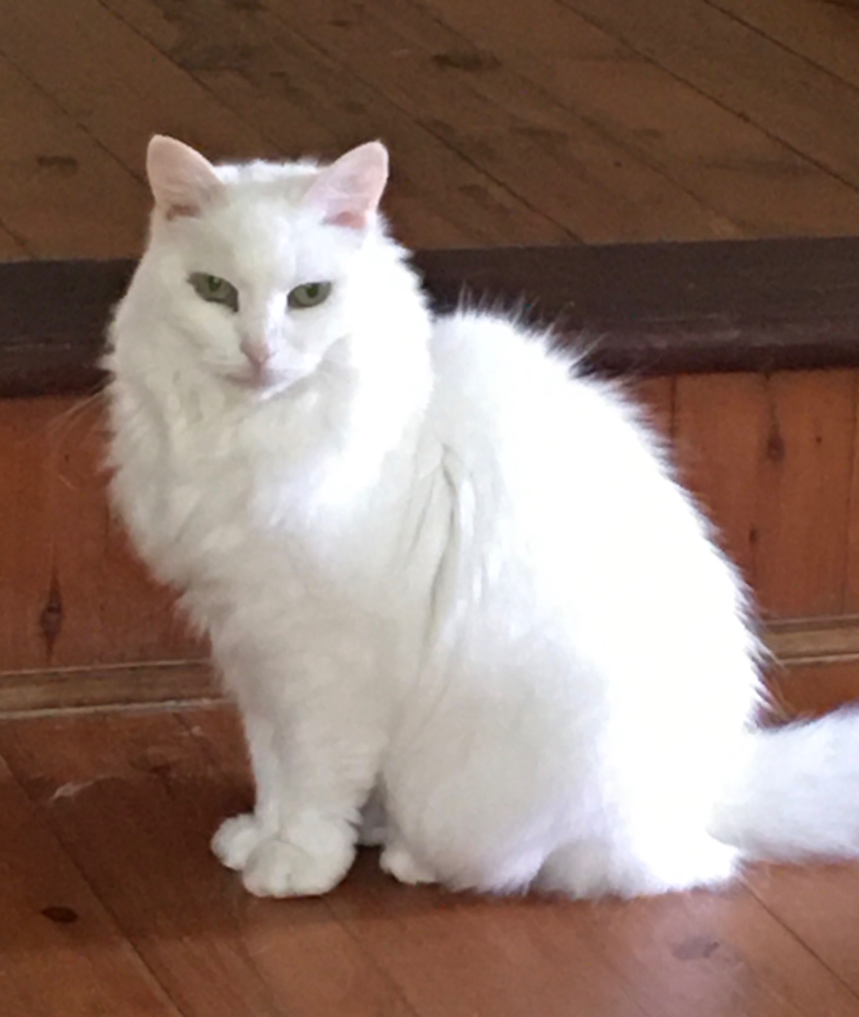 This shy and beautiful girl is Angel - also affectionately nicknamed Angie . Angie is a 14 year old beautiful white Persian with striking green eyes.