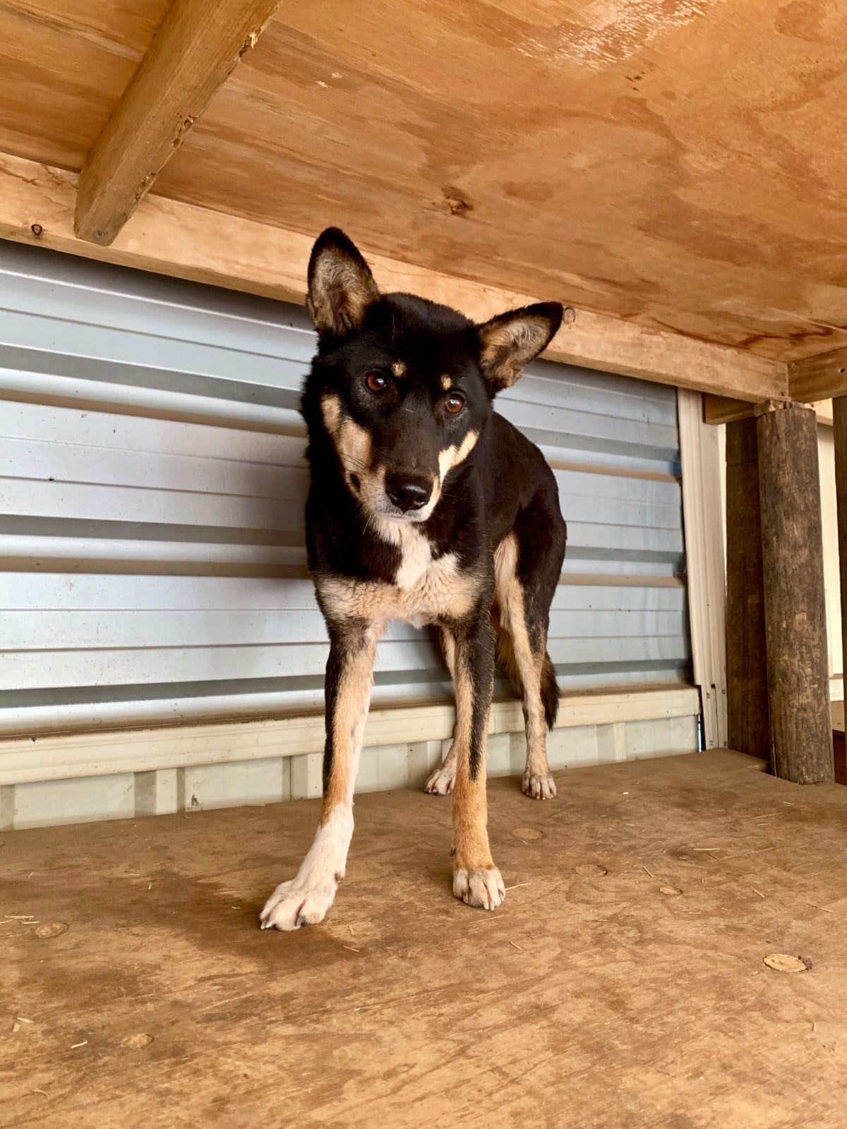 Phoenix is a gentle soul. Like most wild-born dingoes she is shy and reserved around new people. Her sweet personality shines through once she is comfortable and knows she can trust. Phoenix can sometimes be found quietly following the volunteers that she trusts around the sanctuary. Cautiously curious of their activities. She will happily hand feed from those that she trusts and will accept head scratches. Her new family will have to be willing to build a bond with her, and devote time to her confidence building on a daily basis.