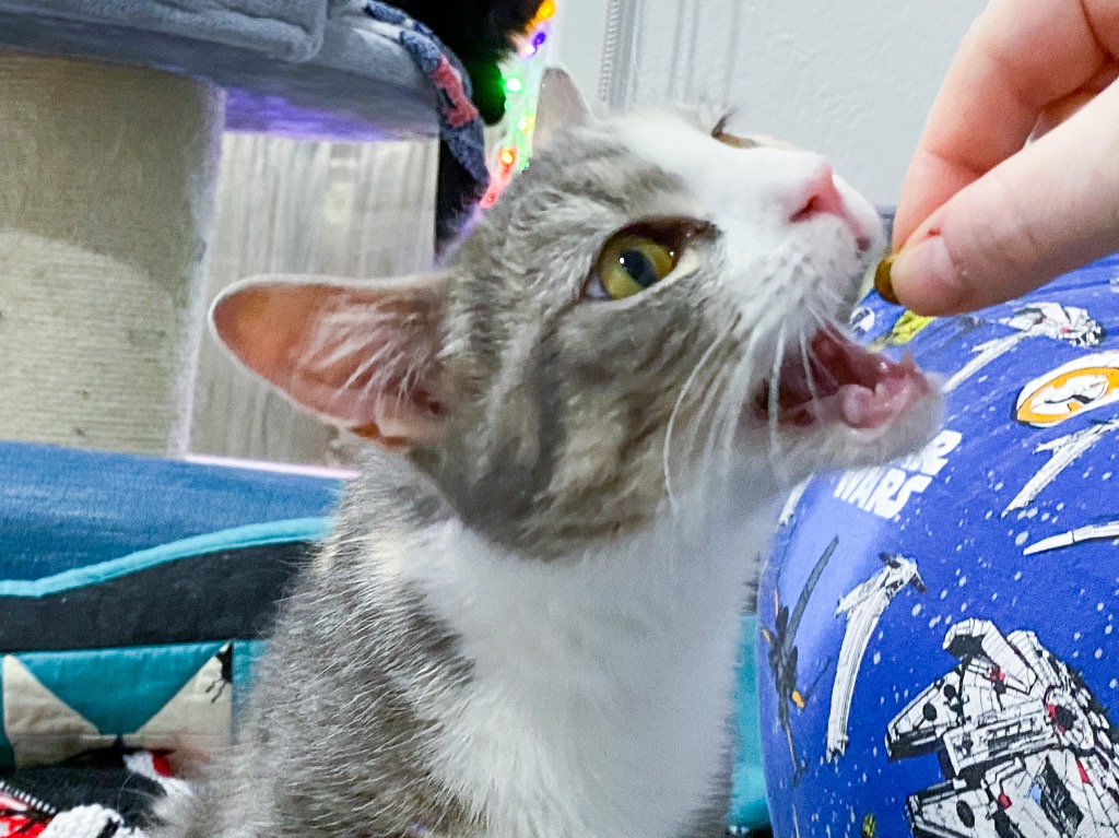 We started Angel on a course of Clomicalm to help her get over her anxiety which was so overwhelming she'd act out. It's been the most amazing thing for her, Angel is now out of her crate and there are no more tanties or hisses! She likes to hang out by the window, watching the world go by, explore the living room, examine any food or snacks you might have and just sit watching you!