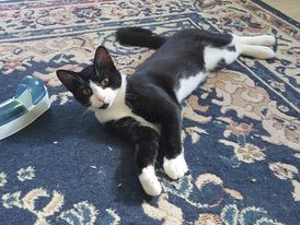 Keanu now loves to play especially with the toy on stick- fishing toy. He loves pats but is still shy with new people. He loves to rub against your legs and is talkative.
