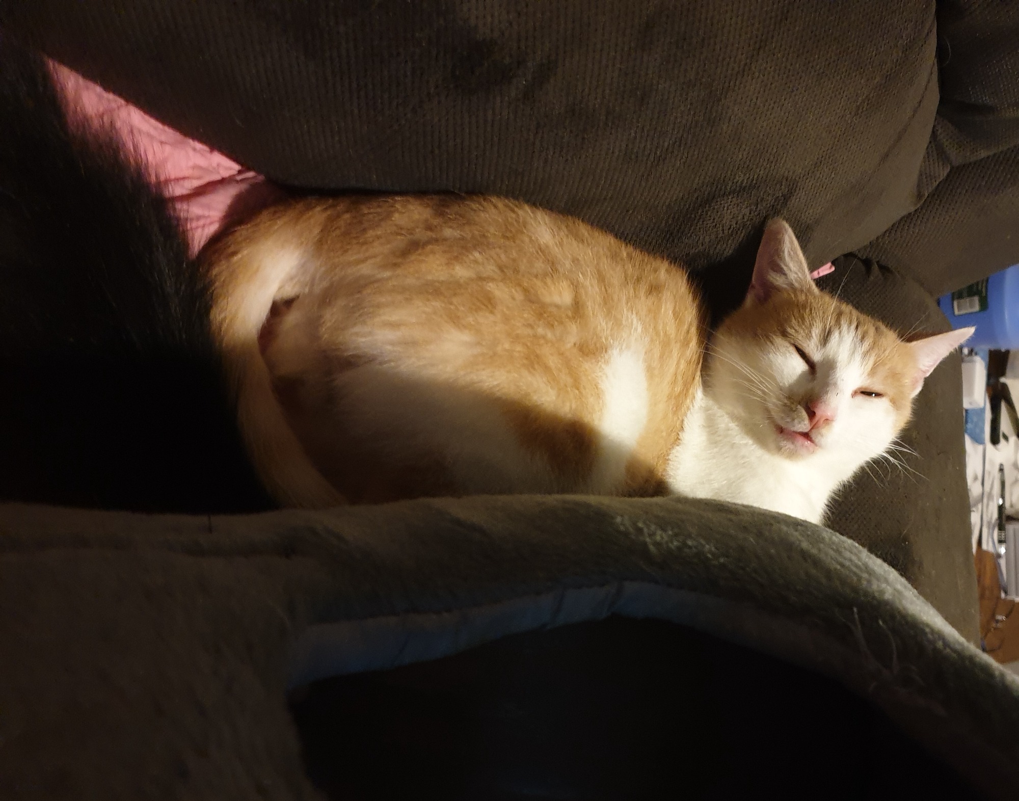 So if you're looking for a fun pal, and your resident kitty(s) are looking for a friendly play- and snuggle-mate, please hit me up!