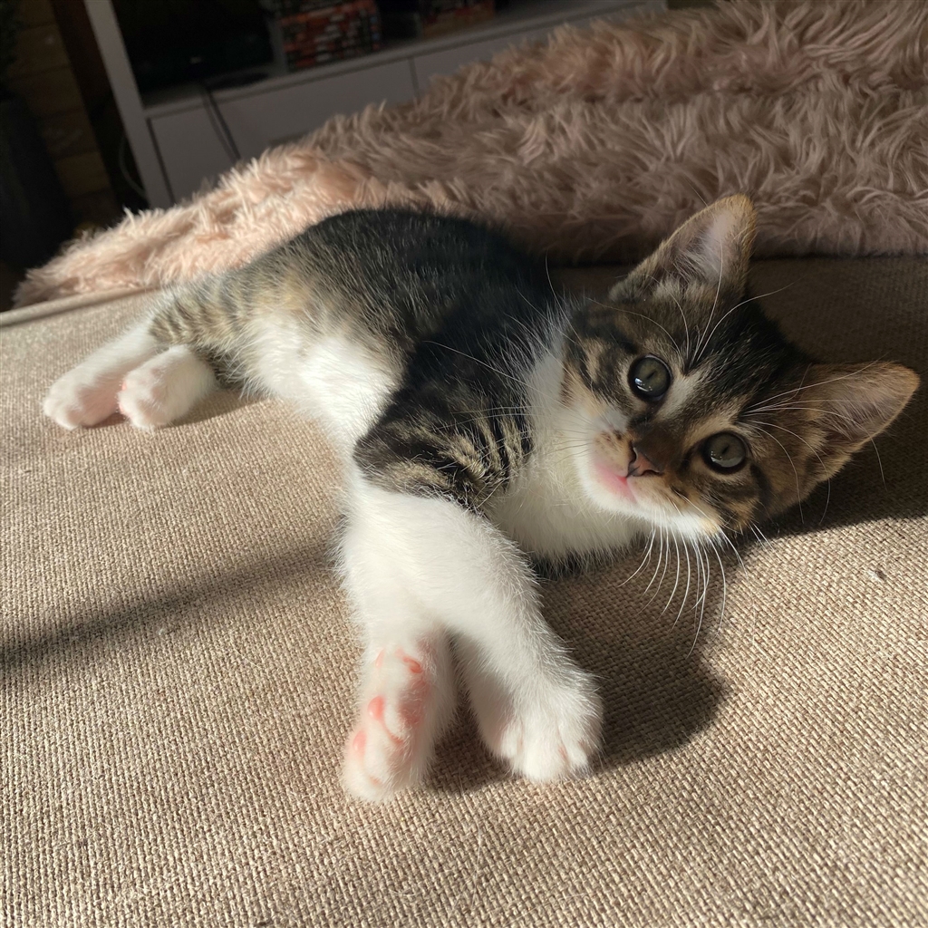 This young lady is personality plus! Kitty at all times is on the go and will spend her days playing and adventuring but will always wind down by the end of each day for a good snuggle with you wherever you are- on the couch or in your bed at night. She will keep herself occupied for hours as long as there's plenty of toys and cat tunnels!