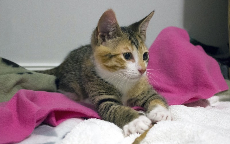 Sox (aka Soxy) is a beautiful female kitten with tortoise 🐢 markings. She also has white paws that look like she is wearing socks 🧦.