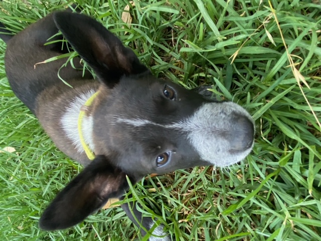 There are also kids in her current foster home and she behaves very well with them (apart from pinching toys to get their attention). She’s very interested in the resident chickens but mostly sitting watching them from the other side of the fence. She has very high energy levels so a large yard where she can run is essential.