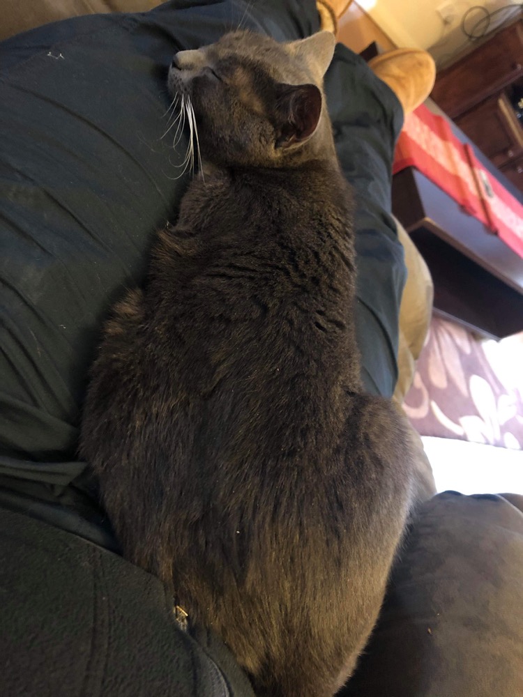 Lulu seems to respond well to male humans and she’s also good around younger cats.
