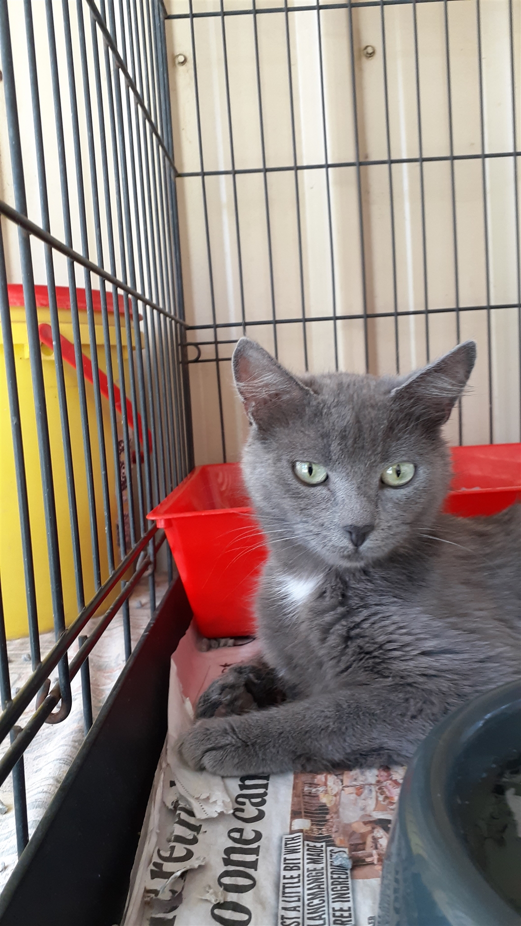She has a beautiful blue grey coat and is OK with dogs and children.