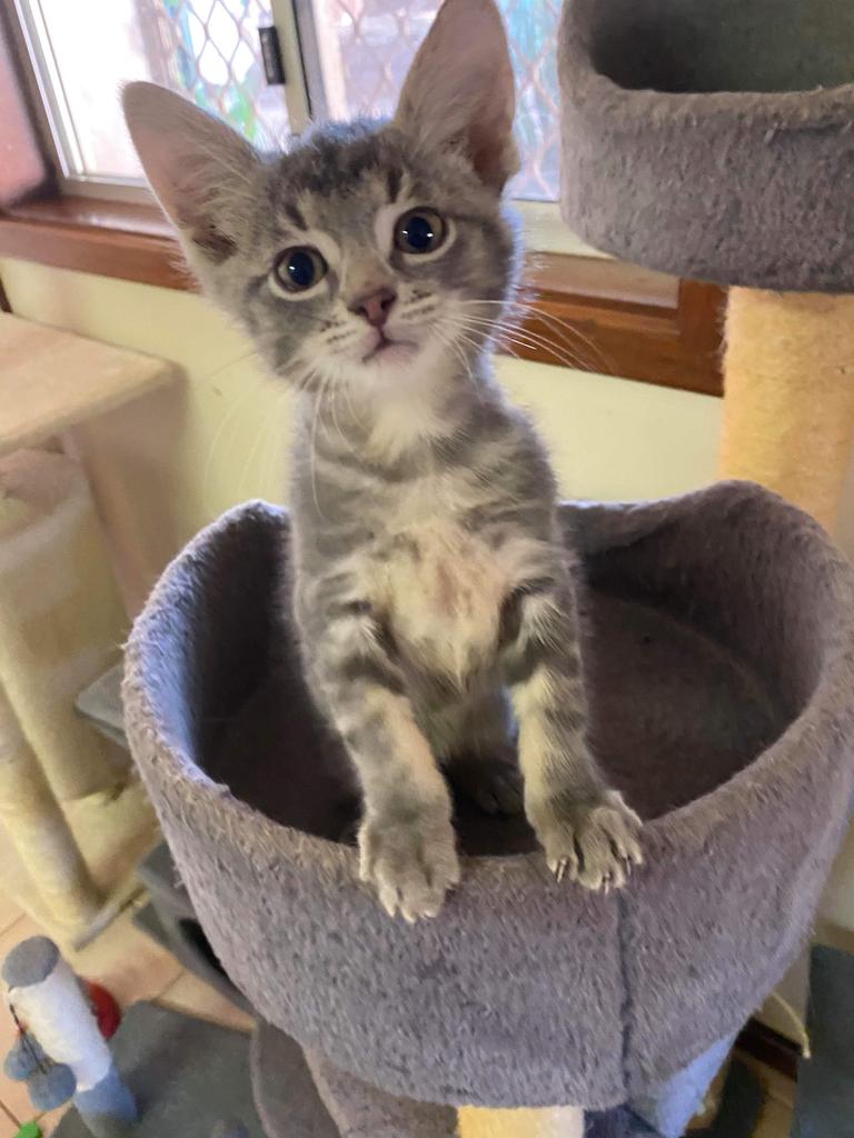 Lovely Bosley came into care as a solo orphan and we successfully attached him to mumma cat Kiki. Kiki helped feed and look after little Bosley and he was then moved onto carer Chantal when he developed a bad case of ringworm. Bosley is looking really lovely now and ready for adoption.