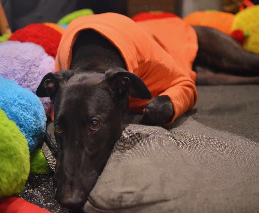 Dogs are pack animals and Greyhounds, in particular, are very familiar with being surrounded by other dogs in their racing kennel environment. For this reason, when left alone without people or other dogs for company, they can be prone to separation anxiety which can manifest in destructive and/or noisy behaviour. Yes, they may "grow out" of it after a few weeks in their new home, but why put the dog through that stress to ultimately live all day alone, while everyone is at work? As a result we do not rehome dogs into households where they are left on their own for more than 4 hours per day, without either people or another dog for company.
