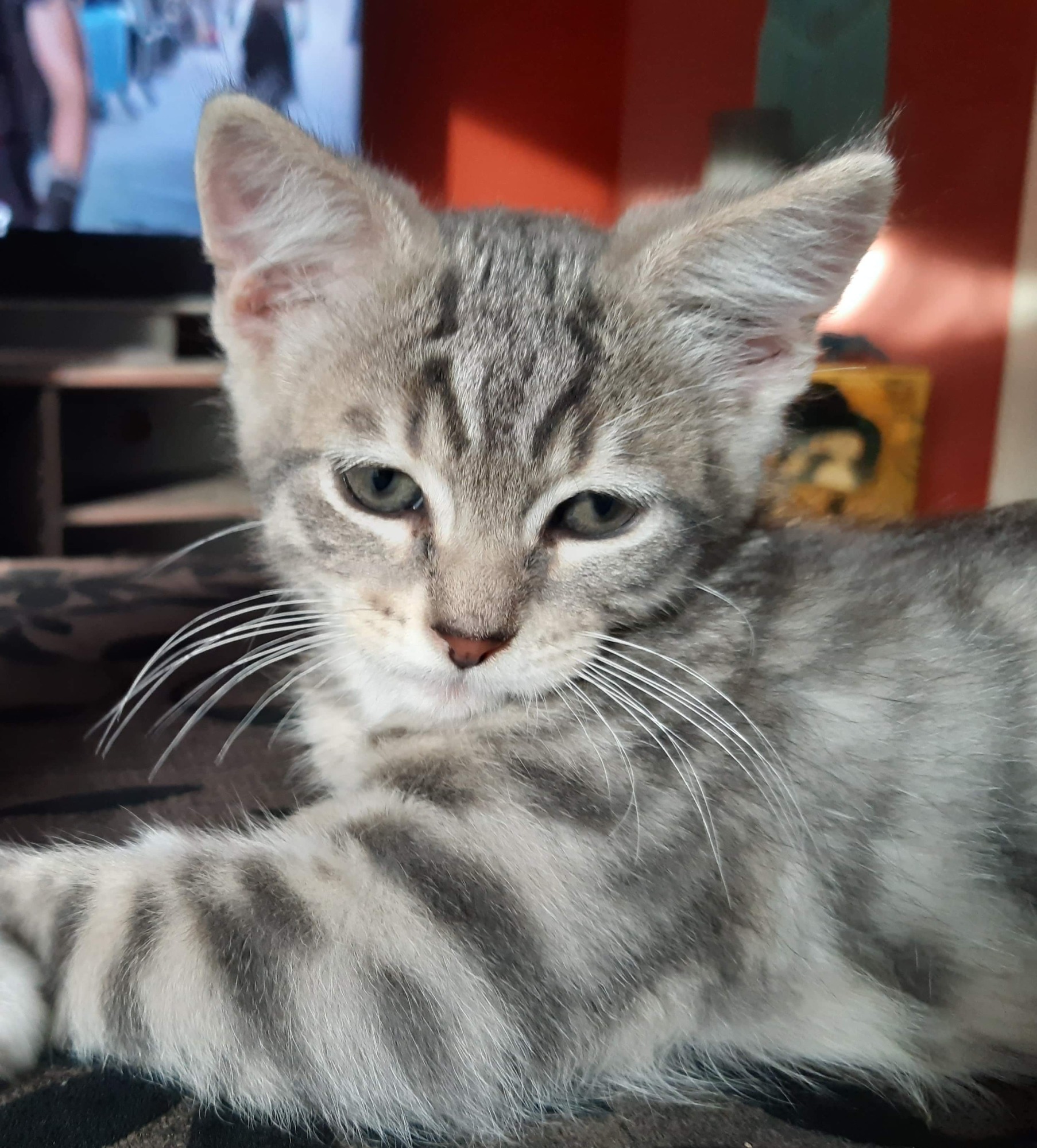 Loves to play with his toys and chase his brothers. Enjoys exploring and loves company, purring loudly with happiness when getting cuddles.