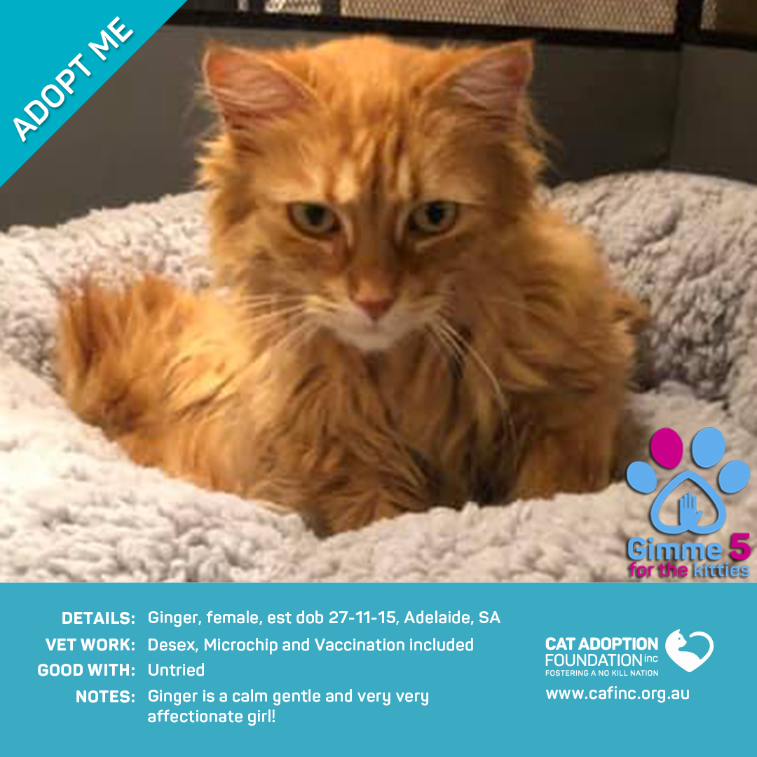 Donate to Ginger at Cat Adoption Foundation Incorporated via Shout