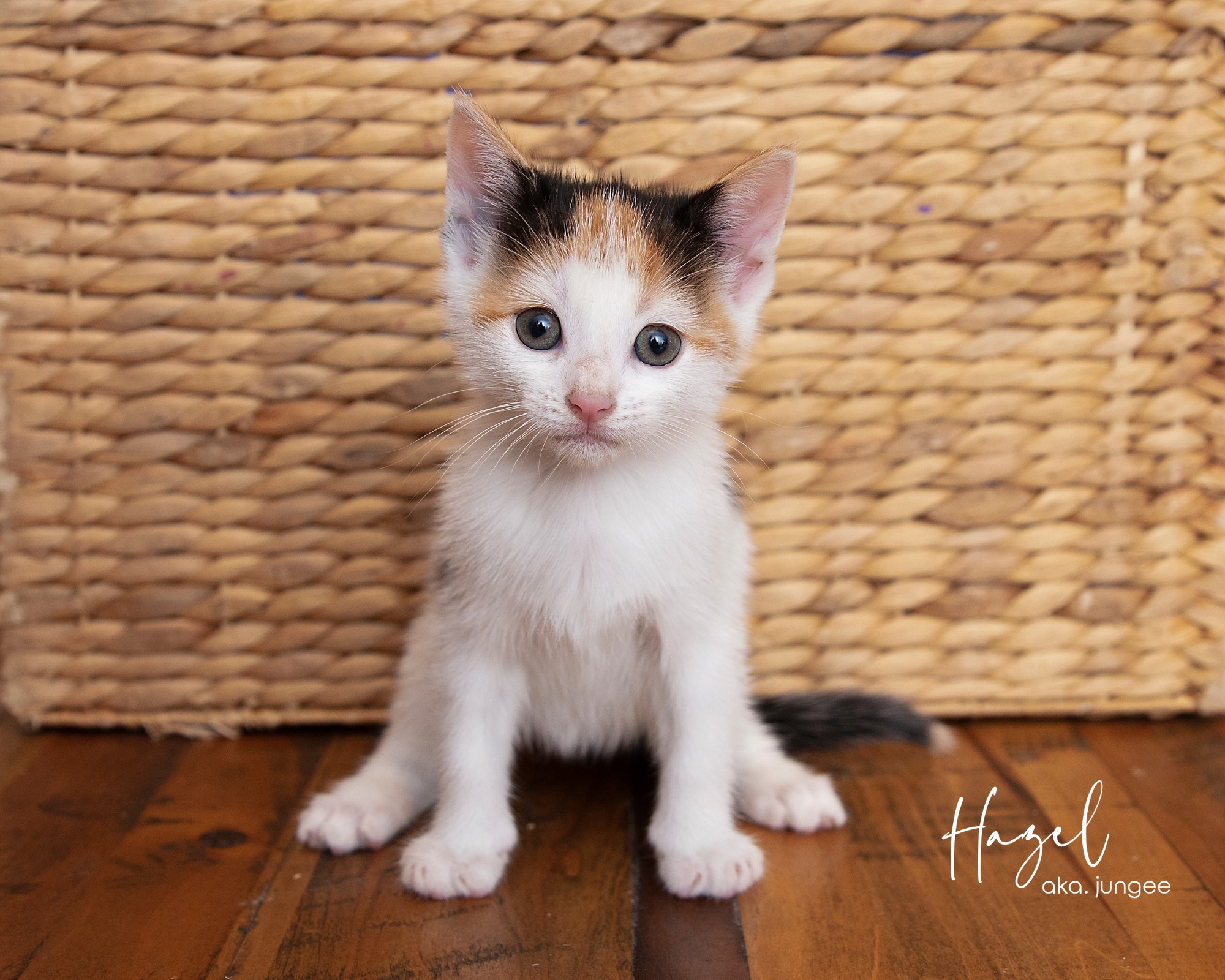 Hazel is a Calico reserved 8 week old, kitten. She is a quiet little cherub who likes to squeeze into tight spots whilst she figures out her surrounds. Once she is comfortable she loves to bounce around and is obsessed with bells and tinsel. She is gentle with children and comfortable with older dogs.