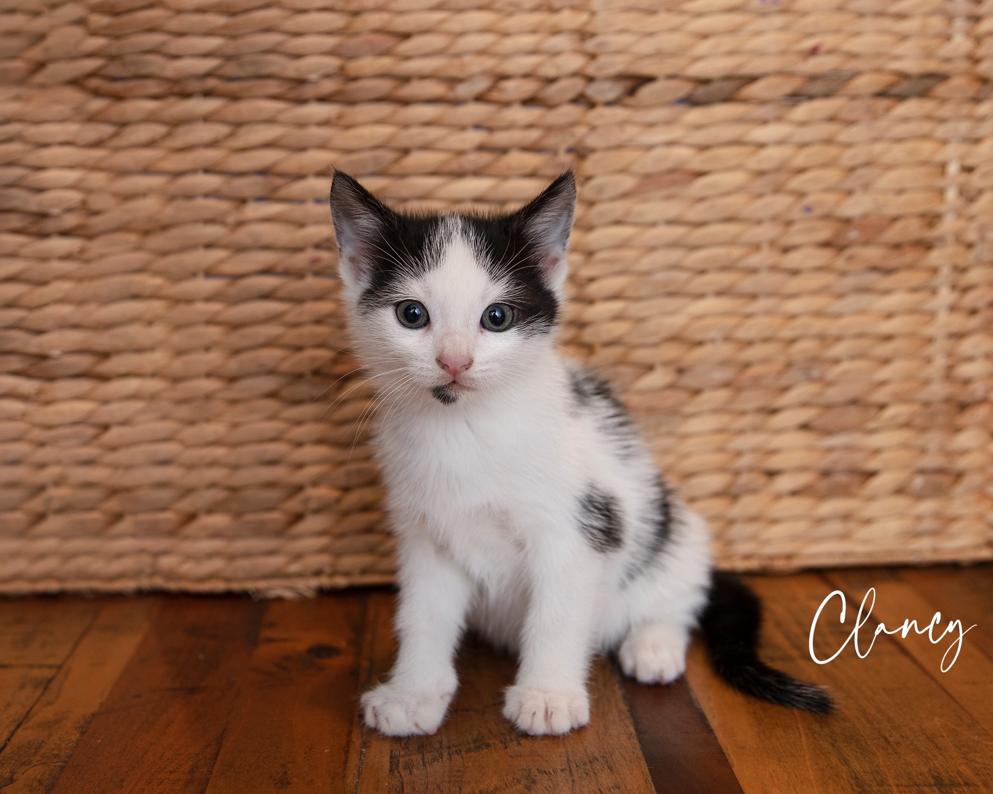 Clancy is a lively little cherub who likes to jump around the kitten tunnel, wrestle with her siblings and jump and play rough with toys.