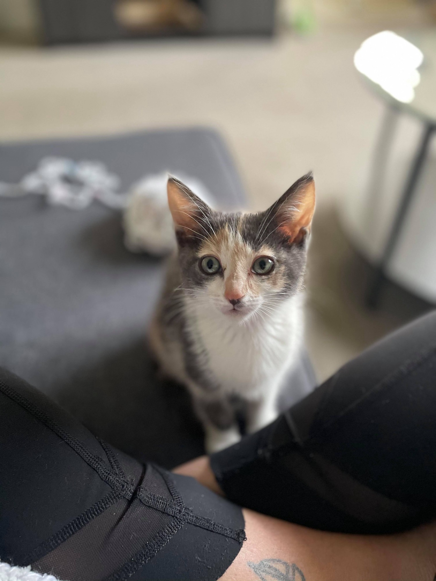 An adventurous and curious kitten, Dasher loves to explore every corner of the house and is fearless. You will often find her sleeping in the most random places after an adventure.
