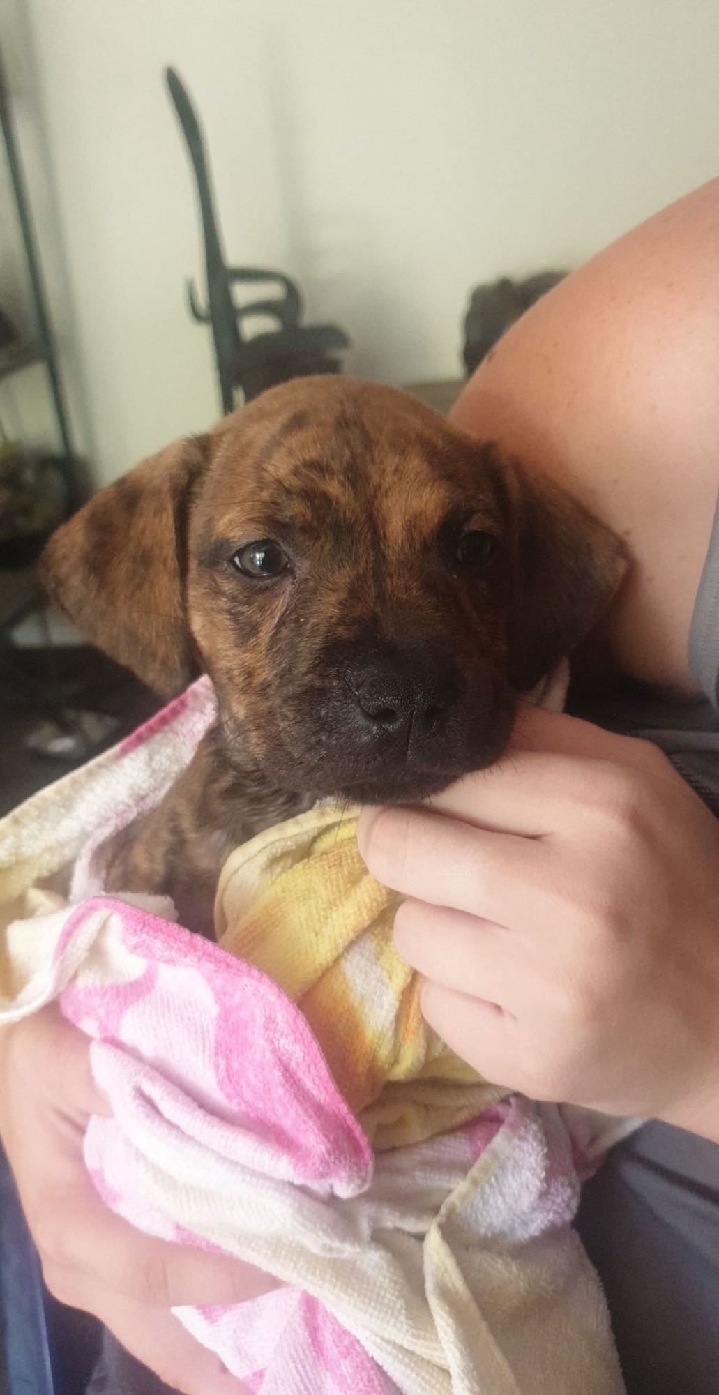 Jenner is 7weeks of age Staffy X .... She is a very gentle puppy and will fit in anywhere ... She is playful and will sit with you as well ... She is learning all her manners ... ready for release early January ... holding deposit is required ... LOCATION TOOWOOMBA ... carolangelsrescue@gmail.com for more info