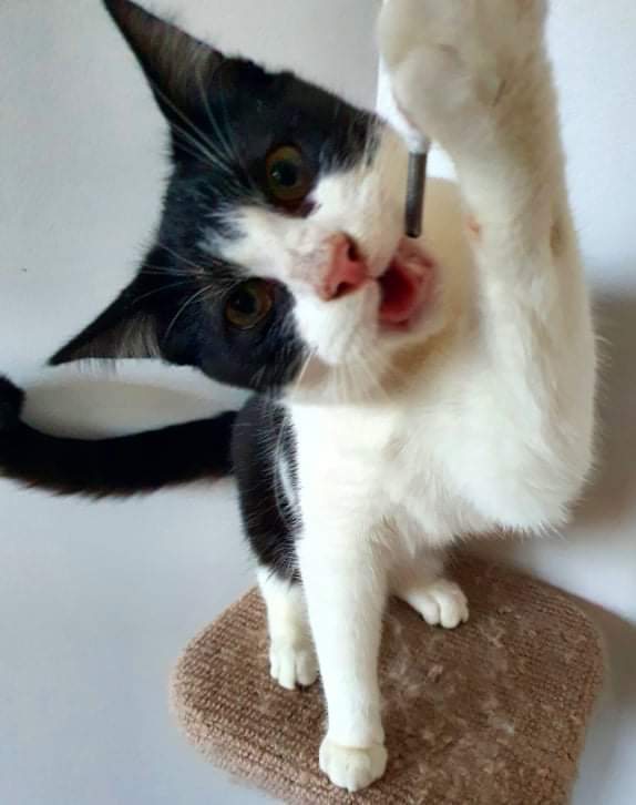 "Hey! Hey! Hey! Are you looking for a new best pal? I'm here waiting! Come and adopt me and we can be BFF I promise! I'm a friendly, happy, affectionate, playful, cheeky, active, intelligent, very loving and lotsa fun kinda dude. Contact my peeps at rescuemewhiskersandpaws@gmail.com with my name "Rocket" and they will send you a Cat Adoption Questionnaire to complete and return to them." -Foster kitten Rocket 😺