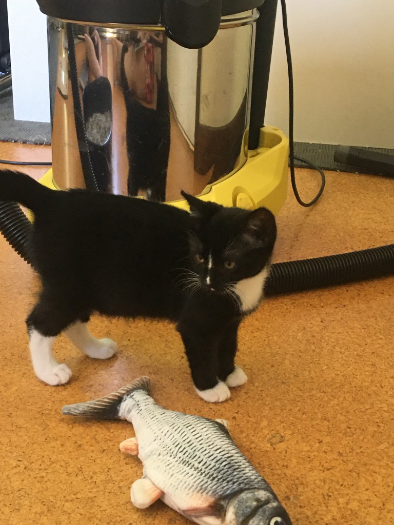 Lacey is a chatty little lady! She's always very interested in the places you're going and the things you're doing, and loves to be picked up for cuddles. She will chirp at you to greet you, and while she doesn't play as much as her siblings she loves a good cat toy tackle. She still hasn't realised she has claws, and she doesn't strike us as a kitty who will grow up to be a particularly proficient hunter.