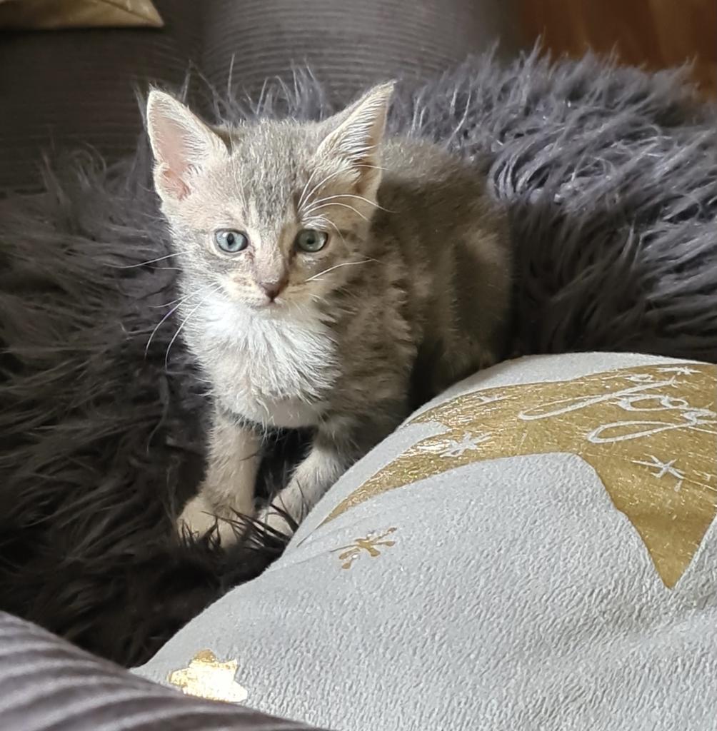 You could describe me with three C's: I'm cuddly, curious and courageous. I've also lived with some other cats (one of them is a weird slobbery thing that the humans call a dog, I'm not too sure what type of cat that is!) And I've had no issues at all, so potentially I would fit in well with your other furry family members. I'm only 8 weeks old so I have a lot of purrsonality that will be appearing soon, so why not take me home and witness me grow into the cutest kitty ever!